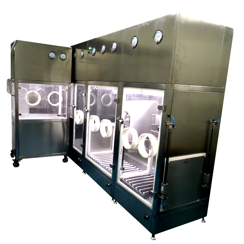 ·操作門采用10mm鋼化玻璃鉸鏈安裝 、隔離門采用費(fèi)斯托無(wú)桿氣缸提升門自動(dòng)控制,保證每個(gè)區(qū)對(duì)外和各區(qū)之間均保持10-15Pa壓差,采用美 國(guó) 諾斯or Piercan海普龍手套,防止污染和確保藥粉操作環(huán)境。系統(tǒng)配套本公司DM200A6手套在線全自動(dòng)測(cè)漏儀進(jìn)行安全檢漏測(cè)試